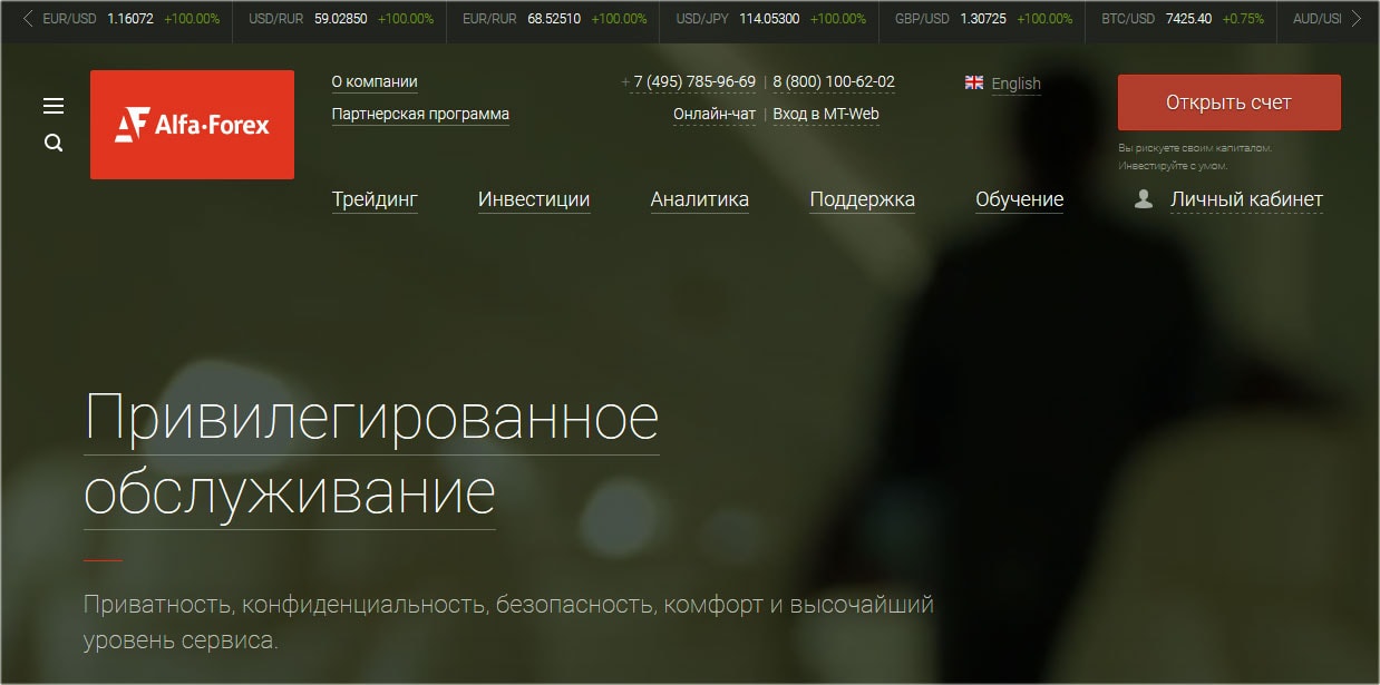 Широкий выбор инвестиционных продуктов, наилучшие условия торговли, доверительное управление с регулированием рисковых уровней и многое другое выгодно отличает Альфа-Форекс от его конкурентов.