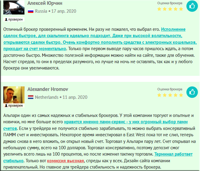 Вот еще 2 отзыва клиентов брокера Альпари: