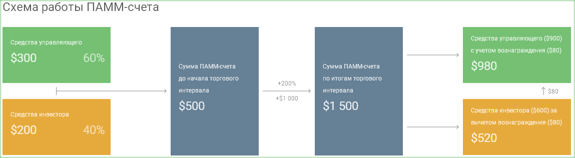 Схема работы ПАММ счета и Ваших инвестиций на нем: