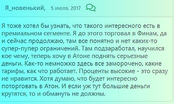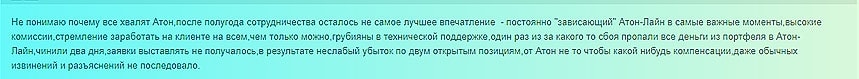 Многие отзывы клиентов Атон говорят о высоких ценах на комиссию, несмотря на то, что для некоторых пользователей они являются вполне приемлемыми.