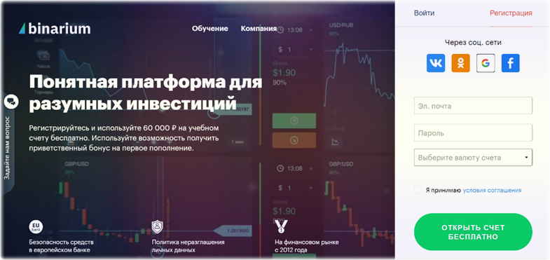 Binarium — проверенный брокер (платформа) бинарных опционов с верификацией по желанию
