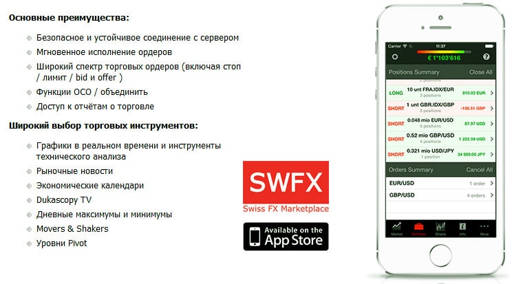 Java. Это оптимальный вариант для ведения мануальных торгов, позволяющий отслеживать на графиках позиции, используя инструментарий технического анализа; JForex от Dukascopy. Данная платформа оптимизирована под ручную и автоматическую торговлю, а также может быть использована для создания, и конечно же тестирования собственных стратегий посредством сервиса АPI; Swiss Forex Trader HD. Платформа, оптимизированная для использования на iPad; SWFX Trader. Платформа для тех, кто использует Android и Apple iOS; Web-платформа. Данная разработка дает возможность настраивать частоту глубины рынка и обновления котировок.Также, клиентам брокера Dukascopy доступны бинарные опционы типа Up/Down: