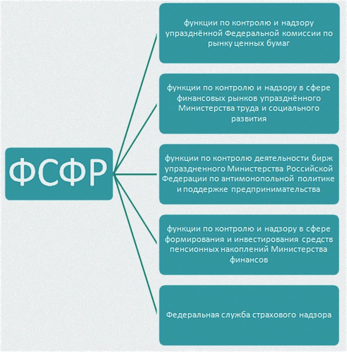 - надзор и контроль над действиями участников рынка, товарных бирж, паевых и инвестиционных фондов, самоуправляемых организаций, Пенсионного фонда РФ и других;