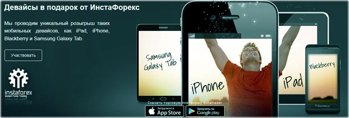 Так имеющим реальные счета, компания предлагает участие в розыгрыше одного из 12 современных мобильных девайсов – а это: Samsung Galaxy, Blackberry, iPhone и iPad . Обладатели этих мобильных устройств, определяются случайно, при помощи специальных алгоритмических вычислений.