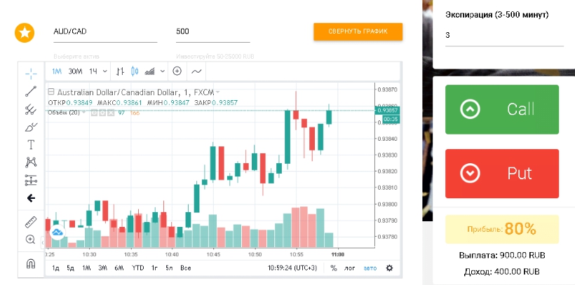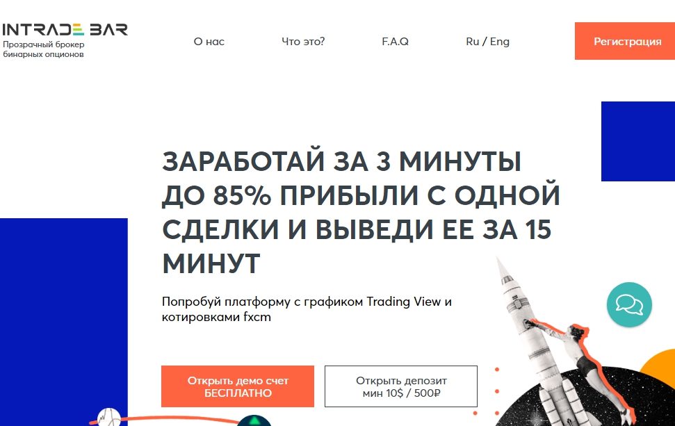 Бинарный брокер Intrade Bar, своим клиентам предлагает обоюдовыгодные условия сотрудничества. Заработок возможен даже при невысоких навыках в сфере биржевой работы. Вывод средств происходит у Интрейд Бар практически мгновенно, автоматом, что относится к несомненным преимуществам компании.