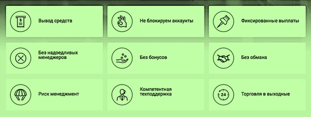 Внимательность и аккуратность – залог успешной работы в финансовом мире. При открытии официального сайта создатели акцентируют внимание на высокой прибыльности работы, а также на следующих положительных моментах: