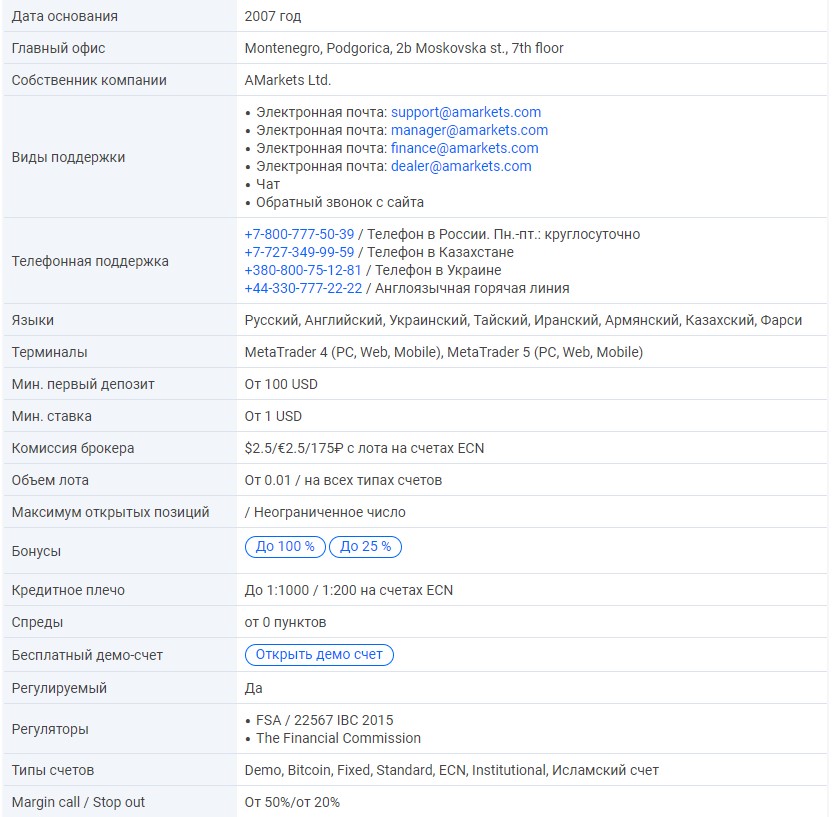 AMarkets, CFD компания, была основан в 2007 году. Благодаря своим лидирующим позициям среди МТ Форекс дилеров, компания предоставляет широкий спектр инвестиционных решений и обеспечивает высокий уровень поддержки и сопровождения клиентов. Качественная организация работы, позволила брокеру занять крепкую позицию на рынке.
