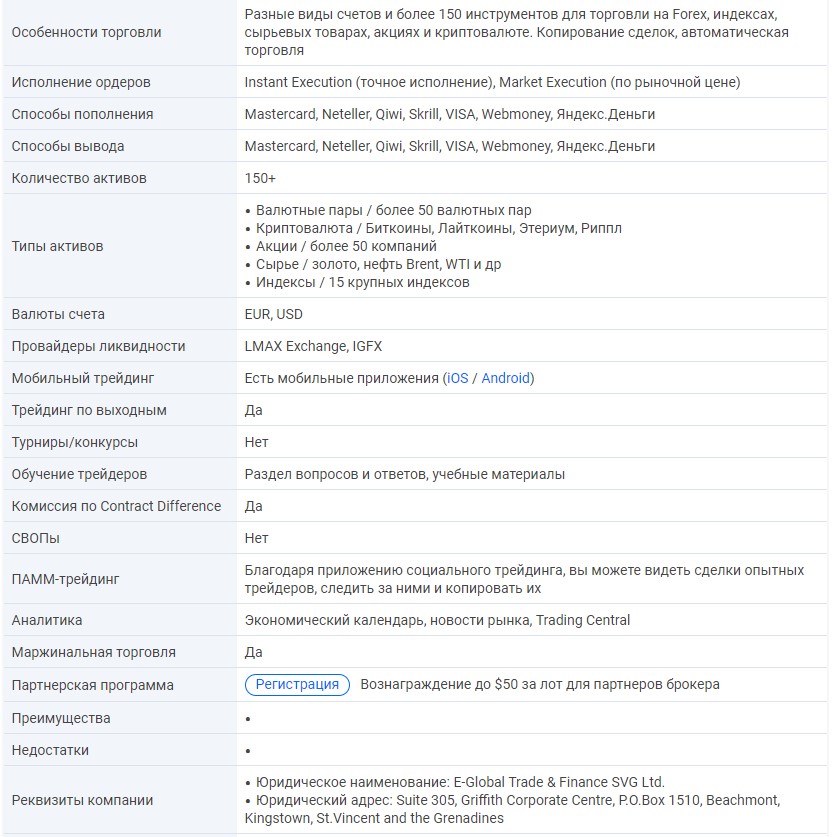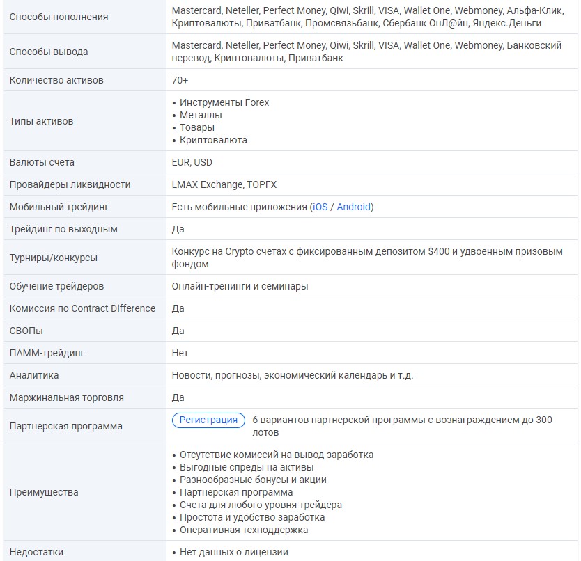Ниже, представлены торговые условия поочерёдно каждого из брокеров, у которых имеется терминал МТ4 и 5 Форекс.