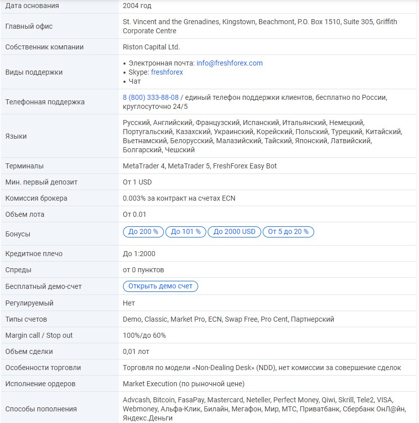 Еще один известный дилер Форекс с демо счетом — компания FreshForex, ведущая деятельность с 2004 года.