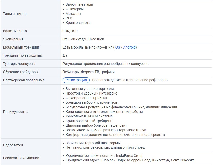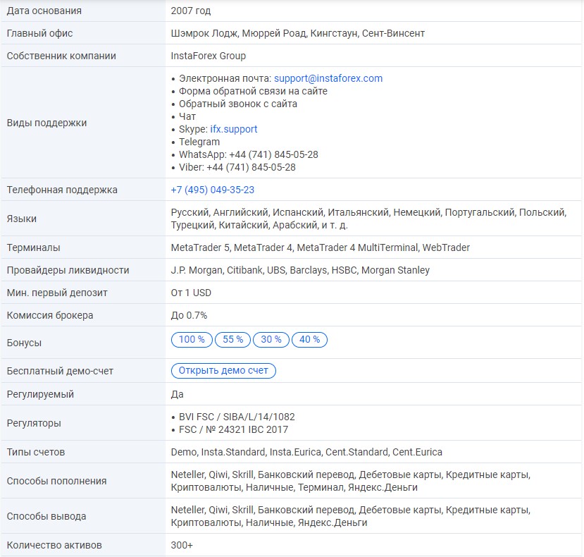 InstaForex осуществляет свою деятельность с 2007 года. Компания представлена во многих странах, включая РФ. Важно отметить, что у компании отсутствуют лицензии европейских или международных регуляторов, однако ее деятельность находится под контролем РАУФР, что обеспечивает высокий уровень гарантированной надежности на рынке MT Форекс.