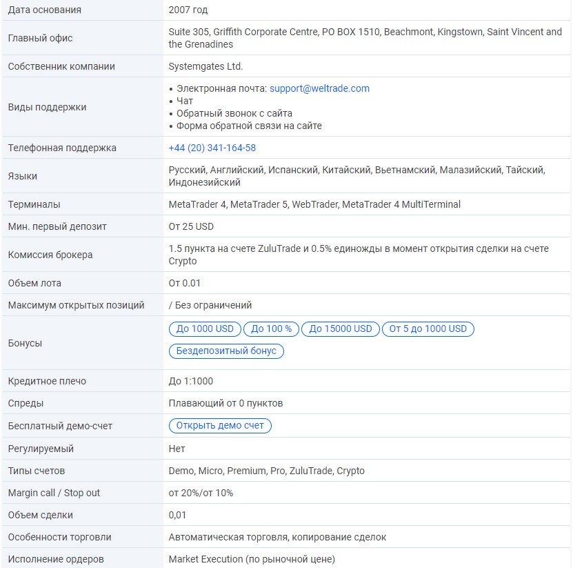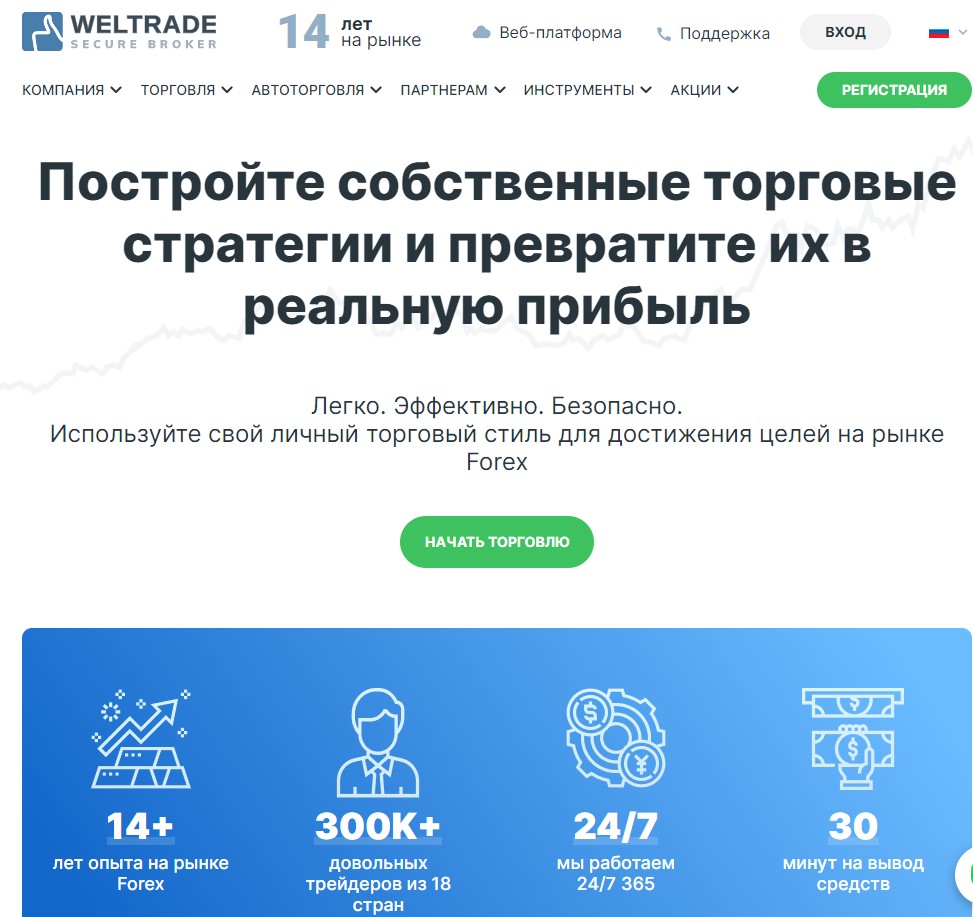 WELTRADE уже более десяти лет работает на рынке, за компанией, как утверждается, стоит команда опытных профессионалов сферы международных финансов и интернет-торговли.