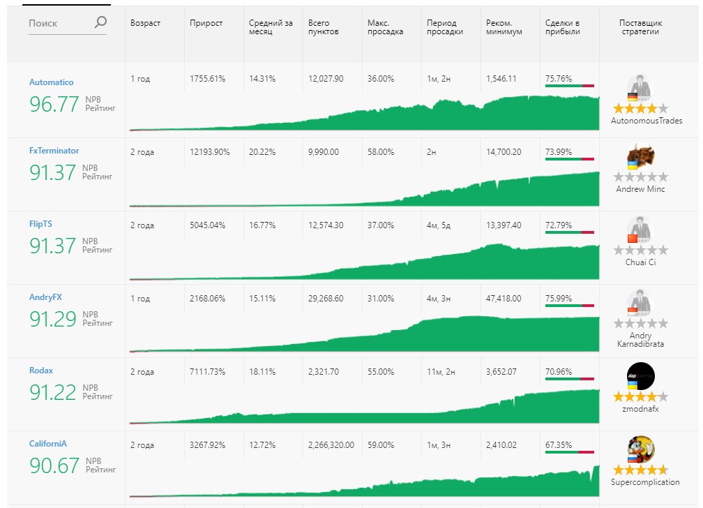 На сайте также NPB Invest можно найти рейтинг всех Поставщиков стратегий, благодаря которому каждый клиент подберет наиболее подходящую под его требования и риски стратегию.