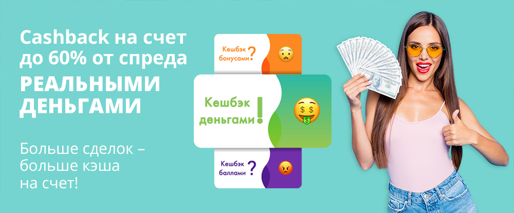 Компания регулярно проводит акции, начисляет бонусы и организует конкурсы. При пополнении торгового счета на сумму 100 долларов и более становится доступен Cashback в размере 60% с каждой сделки (спреда). Подробности акции можно узнать по ссылке.