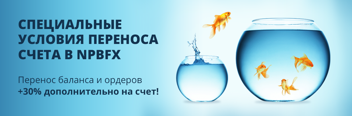 Брокер NPBFX также предлагает интересную возможность – перенос открытых ордеров от любого брокера с начислением дополнительных +30% торгуемого бонуса на счет. Переносятся все открытые ордера (убыточные, прибыльные, хеджированные) и баланс счета. В NPBFX открытие ордеров происходит по тем же ценам, что и у прошлого брокера.