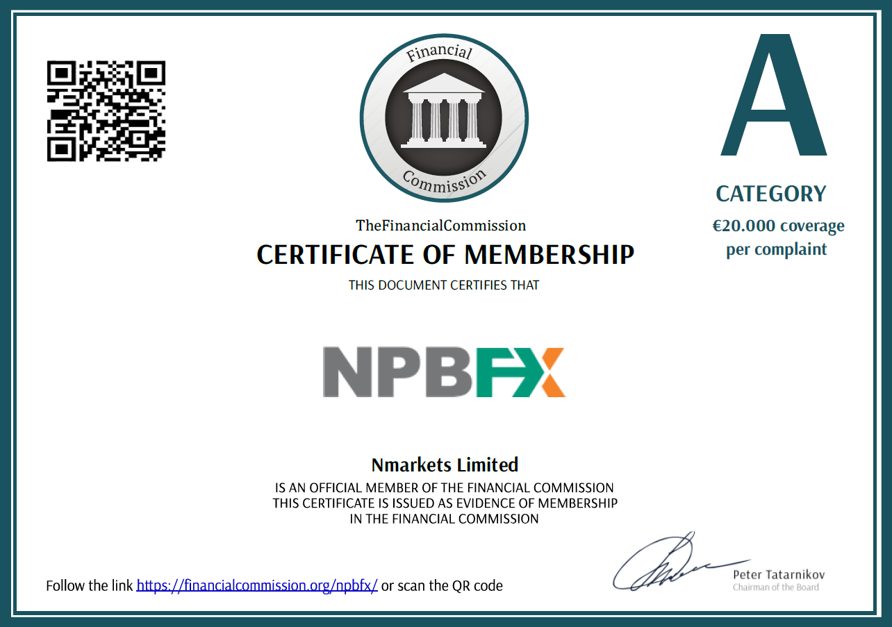 Особого внимания заслуживает наличие гарантированных выплат в размере до 20000 евро из компенсационного фонда Финансовой комиссии, основной задачей которой является урегулирование споров, возникающих между брокером и клиентами. NPBFX обладает в ней членством категории А. Отзывы трейдеров свидетельствуют о том, что на данный момент подобных случаев не было.