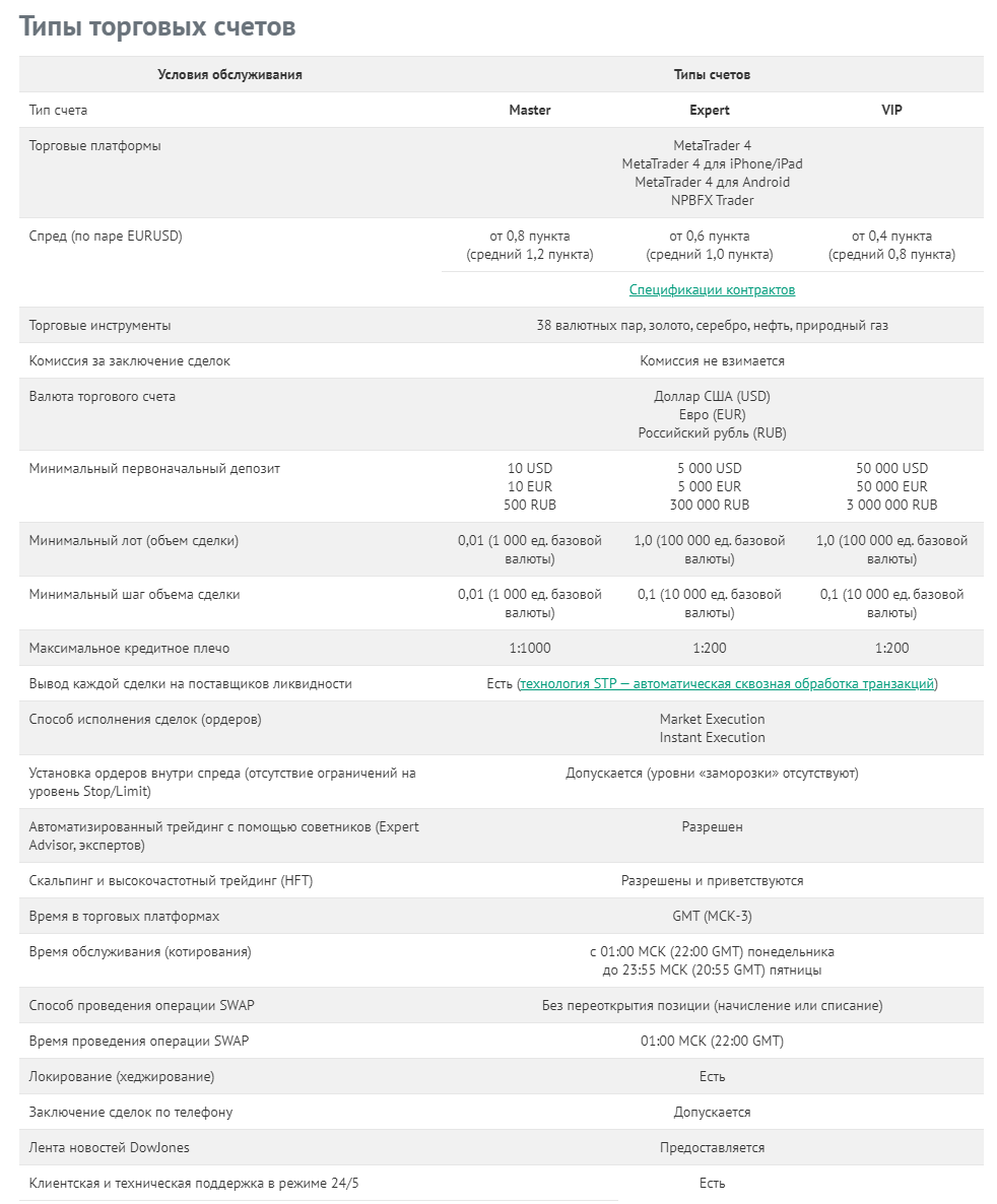 Обзор торговых счетов Forex брокера NPBFX