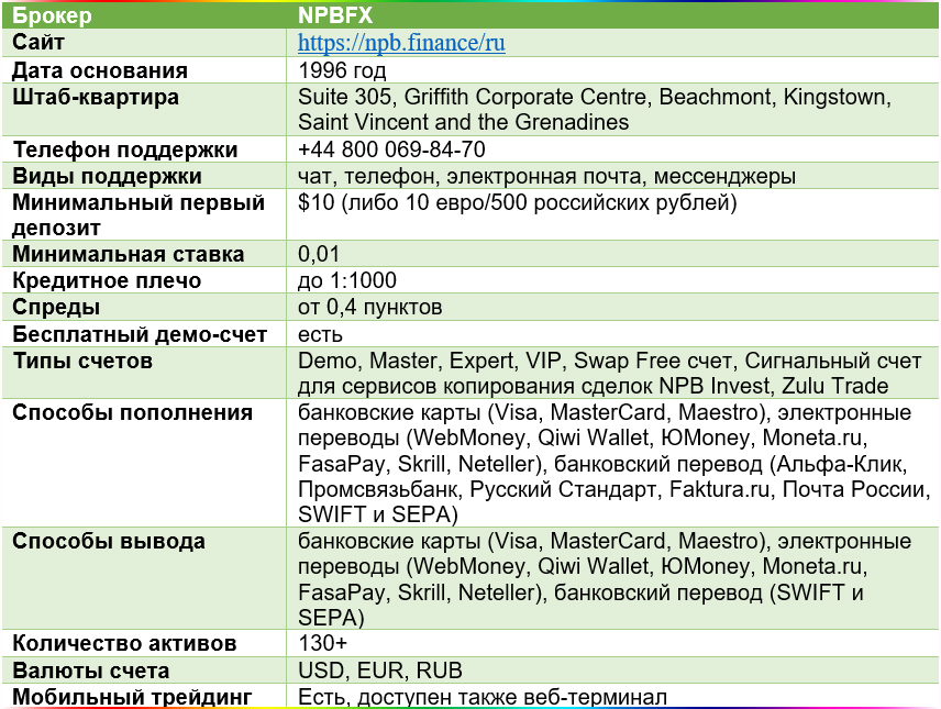 Главные характеристики брокера NPBFX: