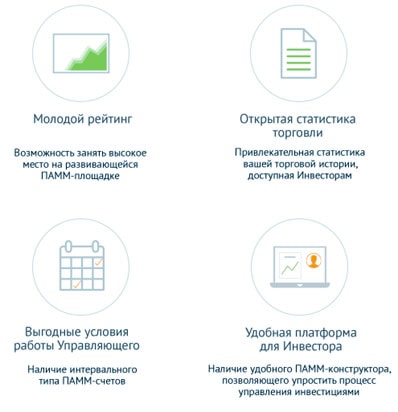 периодичность распределения прибыли, по большинству счетов составляет 30-ть дней; ролловер, проводят в 20:00 (по Москве) ежедневно. В этот ролловер, управляющие открепляют ну или прикрепляют всех инвесторов к стратегиям.Следует отметить еще и то, что для привлечения опытных трейдеров — управляющих брокер проводит специальные конкурсы, ну и предлагает переходить с других ПАММ площадок с полным сохранением истории торговли.