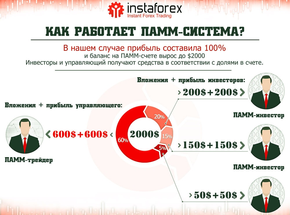 ПАММ-ы ИнстаФорекс позволяют управляющим счетами, распоряжаются совокупным капиталом (собственными средствами и средствами инвесторов).