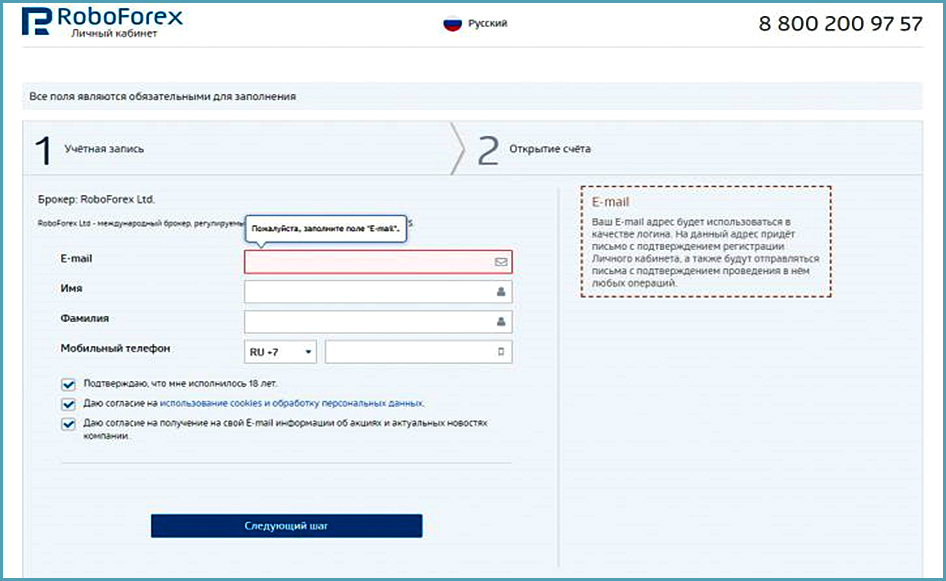 Необходимо ввести личные данные (электронную почту, номер телефона и ФИО) и подтвердить, что вы уже достигли совершеннолетия.