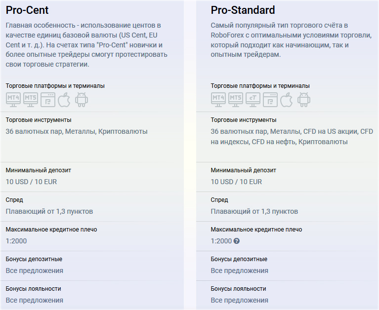 - Pro-Standard – самый популярный с выгодными условиями торговли и подходящий всем трейдерам (новичкам и опытным). Вам нужно внести минимально 10 долларов или 10 евро. Торговыми инструментами выступают металлы, криптовалюты и др.