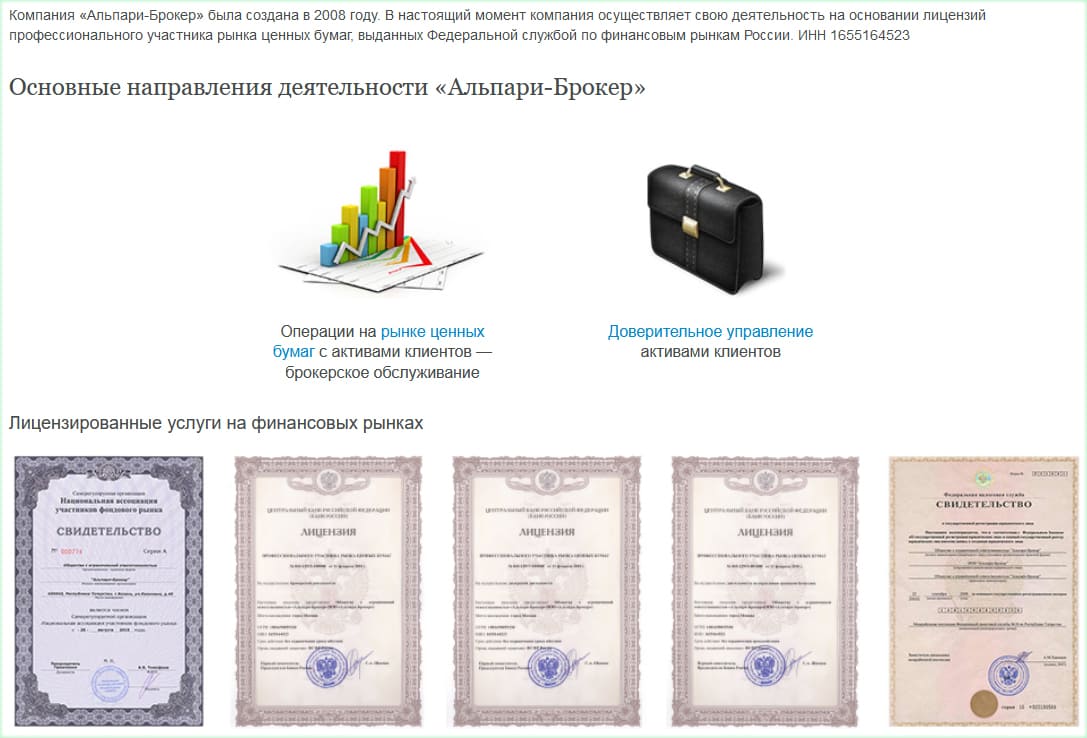 Для работы, в соответствии с действующими требованиями законодательства, брокеру была выдана лицензия Центральным банком Российской Федерации. Наличие такого разрешения указывает на то, что компания ведет прозрачную деятельность, гарантирует безопасность средств и персональных данных зарегистрированных на площадке пользователей.