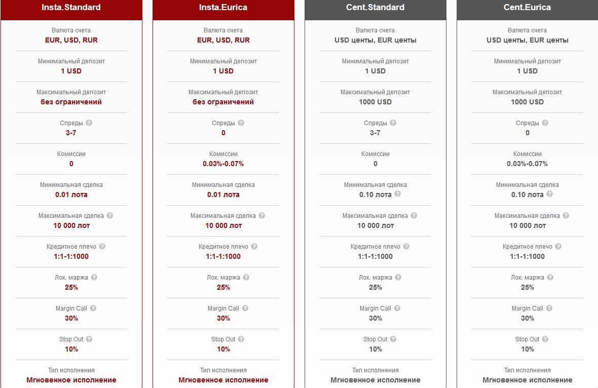 Брокер представляет клиентам широкие возможности – множество торговых инструментов, несколько типов счетов (включая центовые с отсутствием ограничения на минимальную сумму депозита), несколько десятков вариантов завести/вывести деньги с торгового счета.