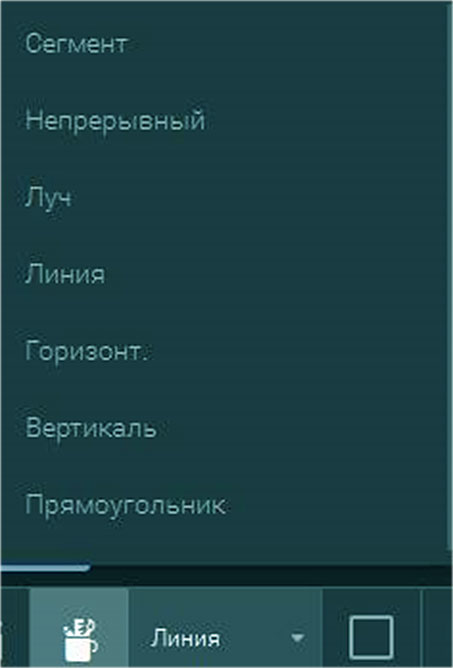 Панель управления и регулирования инструментами тех. анализа, располагается в левом, нижнем углу у рабочего терминала.