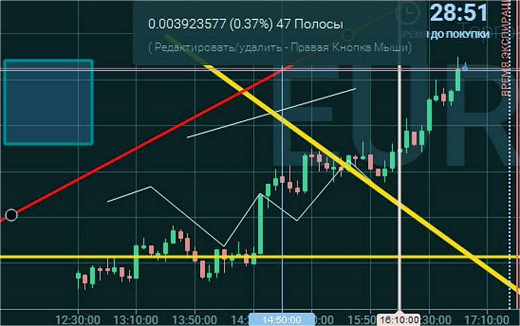 Данные по шагу экспирации и основная информация о размерах и числовом выражении Вашей прибыли, отображенной в основной валюте счета, будет в вертикальной колонке торговой платформы, справа.