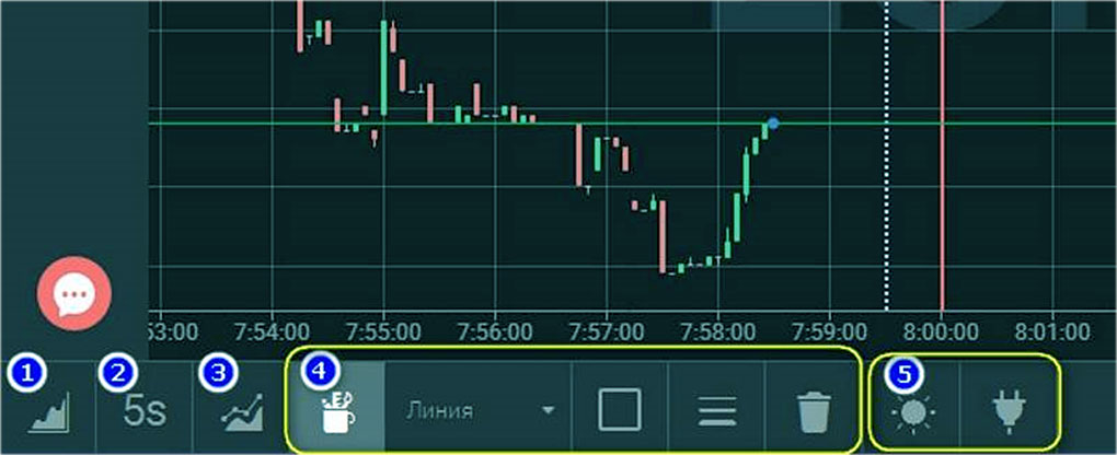 - функцию смены отображения графика, к примеру с линейного на свечной;