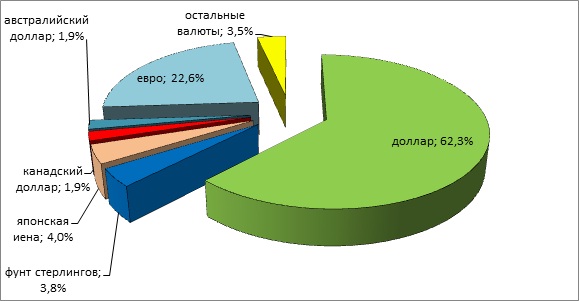 Оценивая структуру нынешнего валютного рынка России можно увидеть, что ключевая роль в транзакциях отведена все тому же доллару США, что связано с достаточно высокими долями контрактов именно в этой валюте.