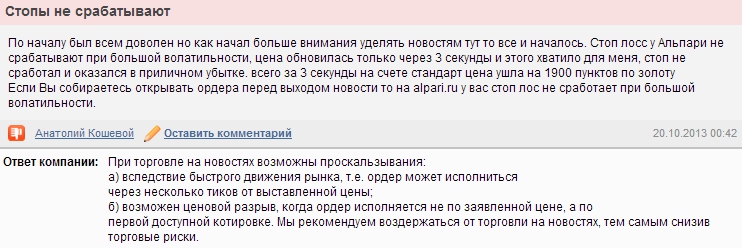Но для службы поддержки Alpari любой отзыв — это необходимость реакции, попытка разобраться. Понятно, что подставные «клиенты» никак не реагируют на запросы компании. При этом эффекта они добились — многие читают такие комментарии и думают, что с Альпари лучше не сотрудничать. Согласитесь, никто не любит, когда его обманывают. Поэтому составлять мнение о чем бы то ни было всегда лучше на основе реального опыта реальных людей.