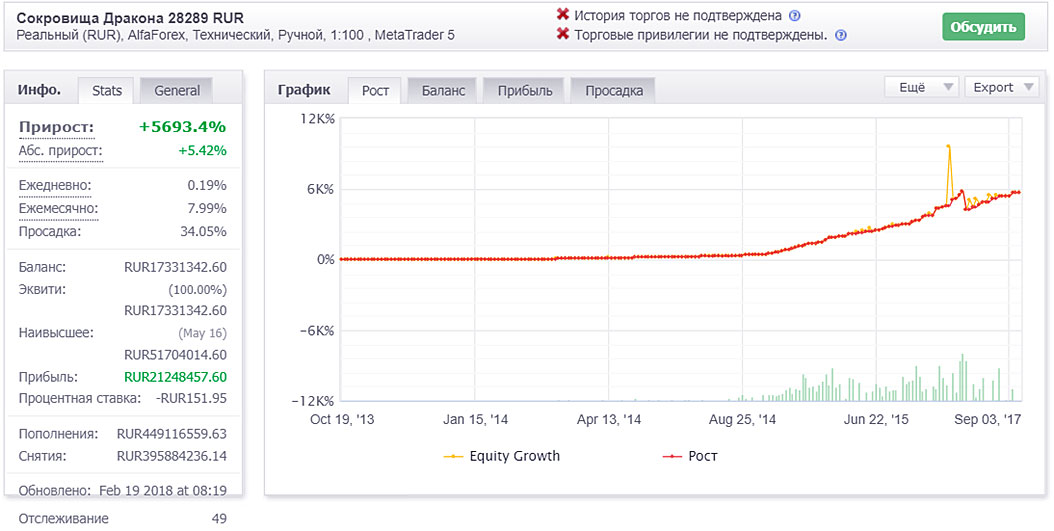 PАММ-счета Dragon Treasures существуют уже более 6 лет, о чем свидетельствуют данные открытой статистики на myfxbook. На протяжении этого времени управляющий демонстрирует стабильно высокий уровень дохода, привлекая внимание многих инвесторов.