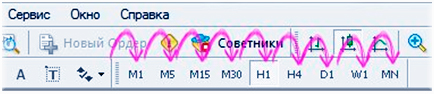 На верхней панели указанного терминала располагаются значения M1,M5,M15, и наконец M30. Вот за их счет мы и можем переключать временные промежутки. Следует отметить, что при их изменении также падает скорость торговли.