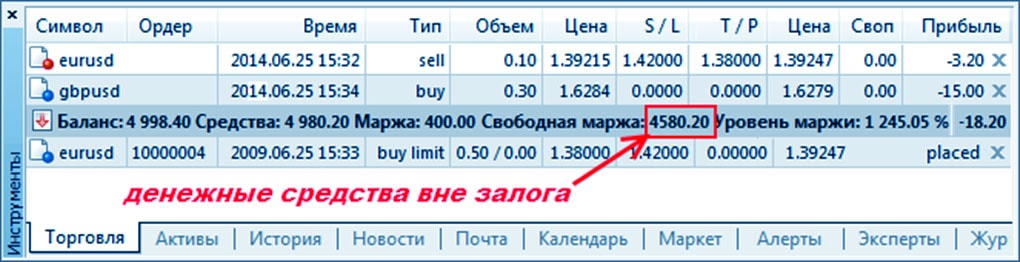 Уровень маржи постоянно отображается в MetaTrader4 в статусной строке. Увидеть маржинальный размер вы можете, посетив директорию «Терминал» → «Торговля». Здесь же будет отображаться уровень маржи, Equity и общий баланс.