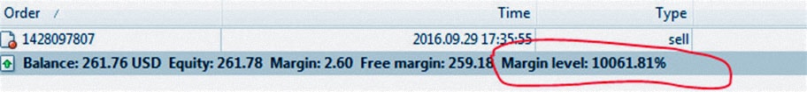 Другими словами, Margin Level рассчитывается путем деления текущего Equity на сумму залога (текущего объема используемой маржи) и умножения результата на 100%. То есть после деления Equity на маржу, вправо будет перенесено два десятичных разряда.