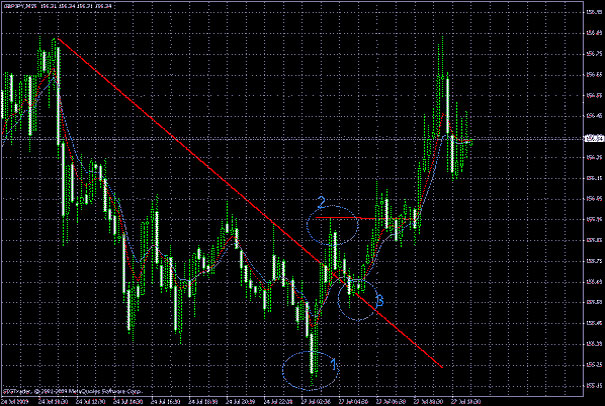 В это время, каждый трейдер рассчитывает на появление новых сигналов для тренда. Это объясняется тем, что специалисты, ждущие продолжения тренда, начнут ставить собственные стопы выше второй точки. Если они окажутся снесенными, то торговля в стратегии будет предусматривать моментальное закрытие короткий позиций и начало работы с длинными. Здесь, многое будет зависеть от того, насколько уверенно график цены движется вверх.