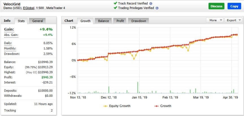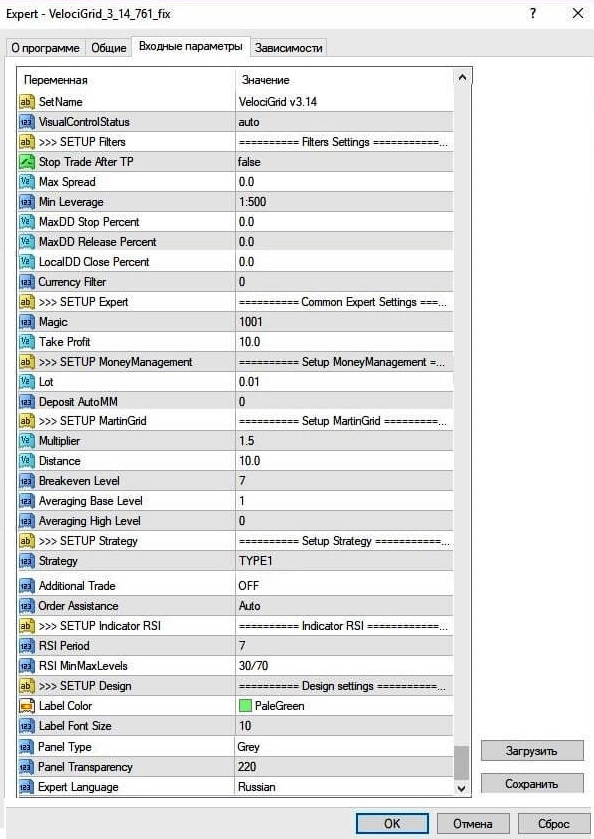 Мультивалютный советник Forex VelociGrid использует в работе торговую систему Мартингейла, в которой есть параметр усреднения. Для открытия рабочих позиций на графике цены будет построена сетка с торговыми ордерами. Притом процедура будет сделана довольно необычно. Для полноценного выстраивания сетки счет может показывать отрицательную динамику.