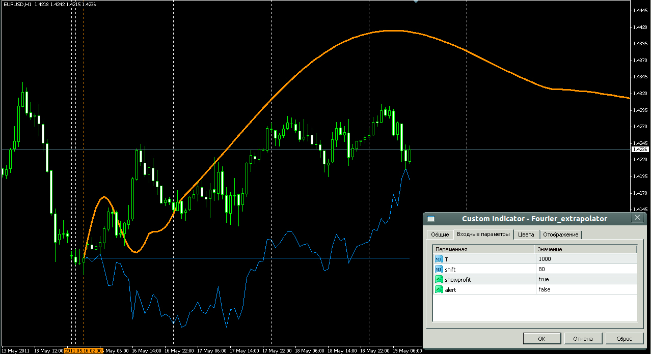 Параметры и настройка индикатора Fourier Extrapolator
