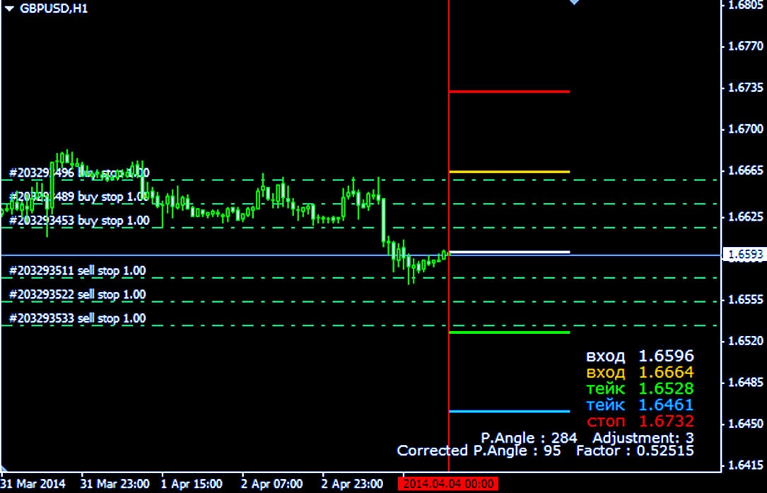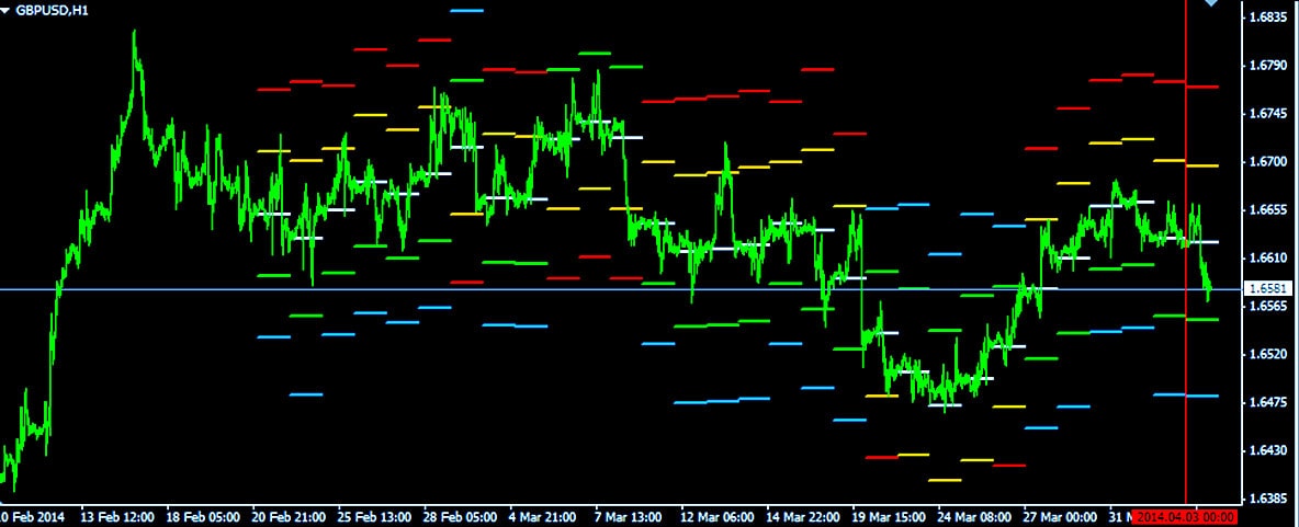 Ниже на рисунке, приведен пример разметки индикатора по паре валют GBP/USD.