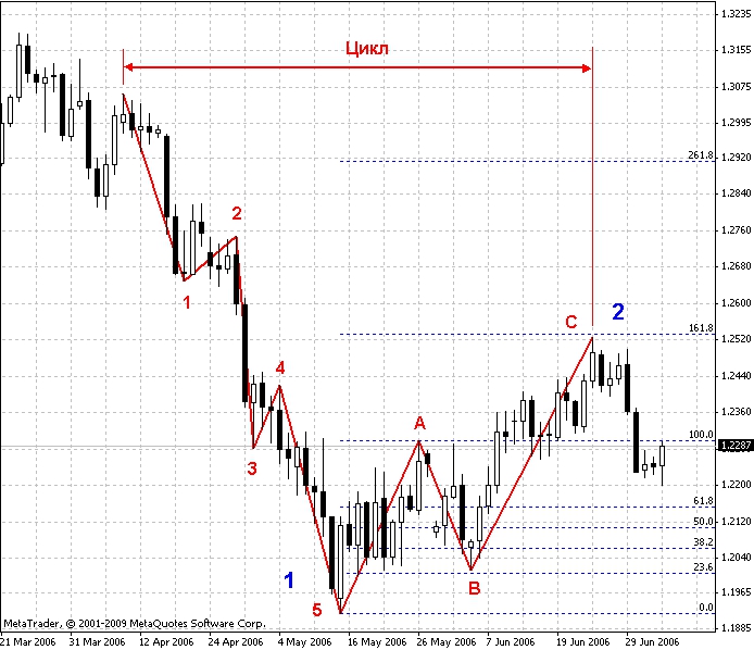 - 5 волн, которые сформировались в направлении главной тенденции;