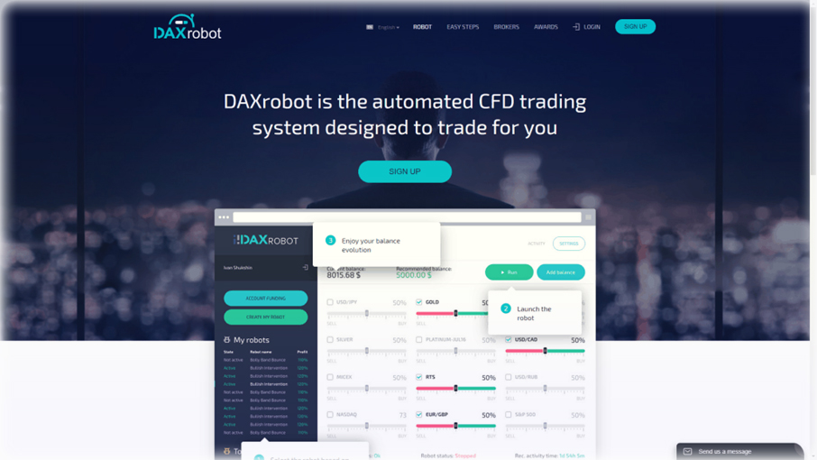 Программа, предназначенная для ОС Andriod и разработанная для торговли на бирже Форекс. Daxrobot доступен пользователям сразу после регистрации на сайте, выполненной с мобильного устройства. Трейдер может оставить общие настройки по умолчанию, либо произвести их корректировку.