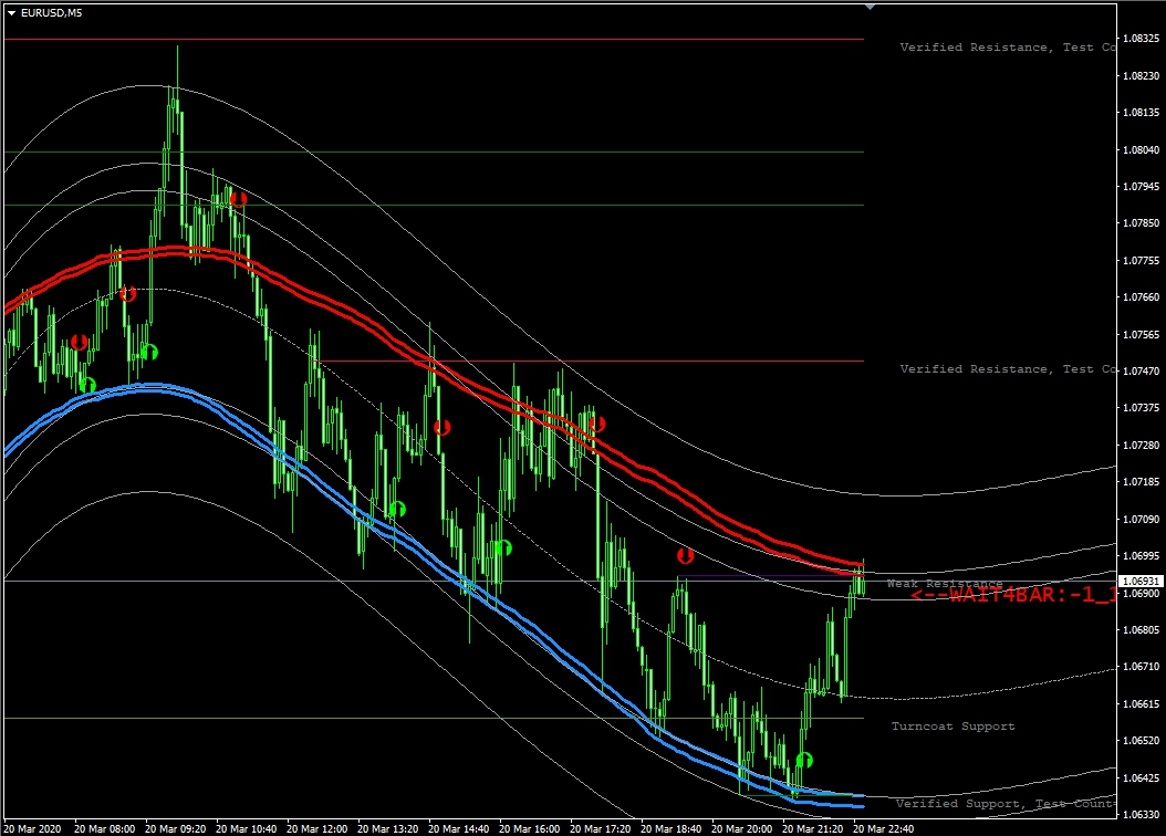 После установки в МТ4, наша ТС должна иметь на графике следующий вид: