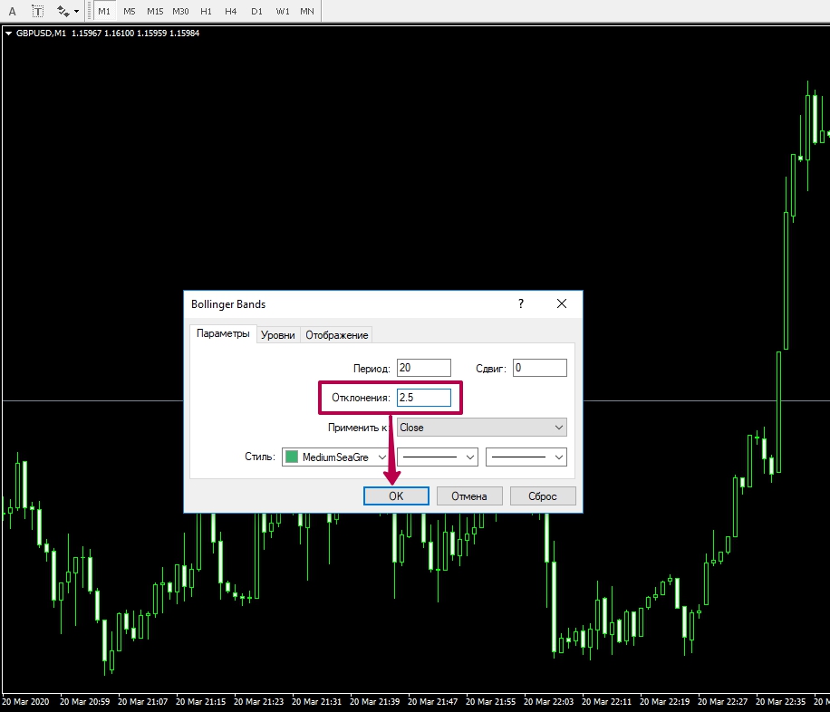 Нам необходимо сменить только “Отклонение” с 2 на 2.5.