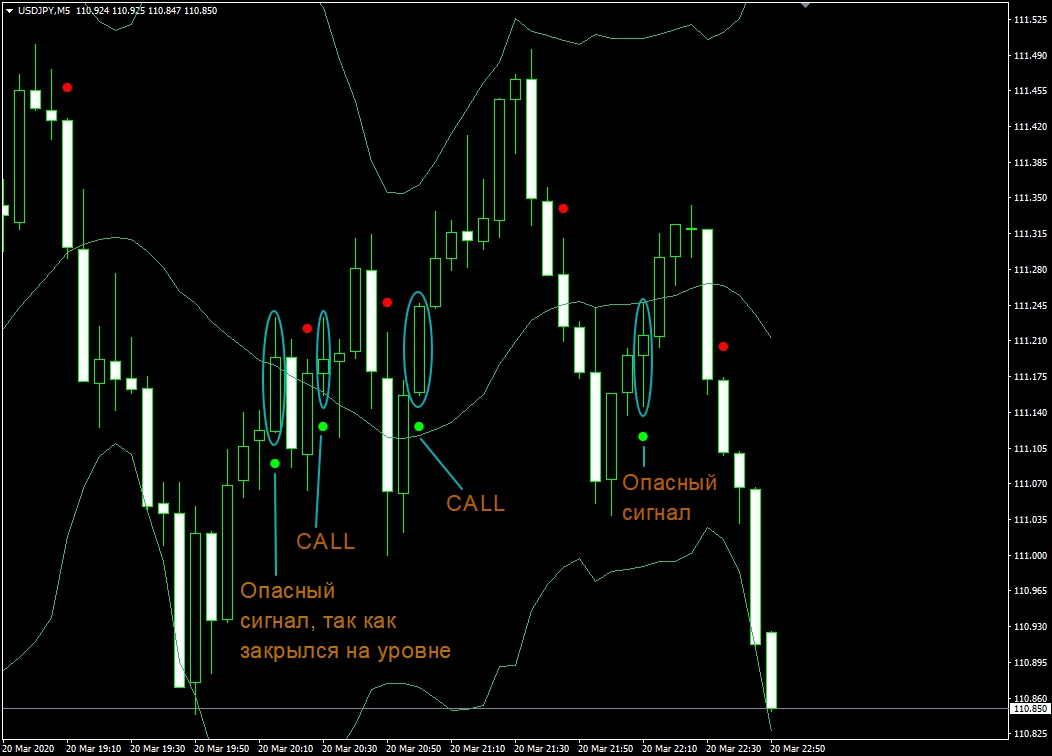 Кстати, данный инструмент, дает особо точные сигналы для покупки PUT/CALL с экспирацией 5 минут, главное – правильно фильтровать ложные сигналы.