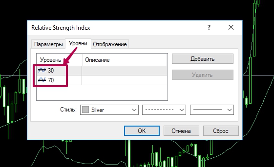 Стандартные уровни, которые здесь применяются это: 30 и 70.