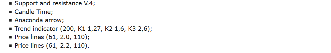 ТС “Anaconda Binary Options” создавалась для игры на опционах со сроком до 5 минут и более, всё зависит от выбранного таймфрейма. Кроме того, данная ТС может использоваться для торговли на Форекс, но в условиях скальпинга.