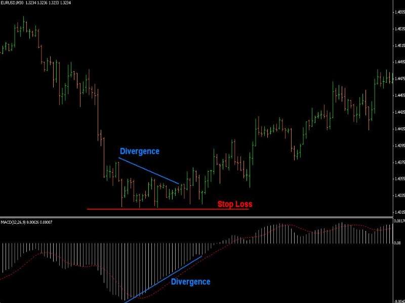 Данные тактики, также предполагают использование биржевого индикатора «MACD». Одна из таких стратегий, часто применяемая трейдерами называется «Стратегия с MACD дивергенцией». Основой данной стратегии, является дивергенция (расхождение) ценовой линии торгового инструмента с линией в индикаторе «MACD».