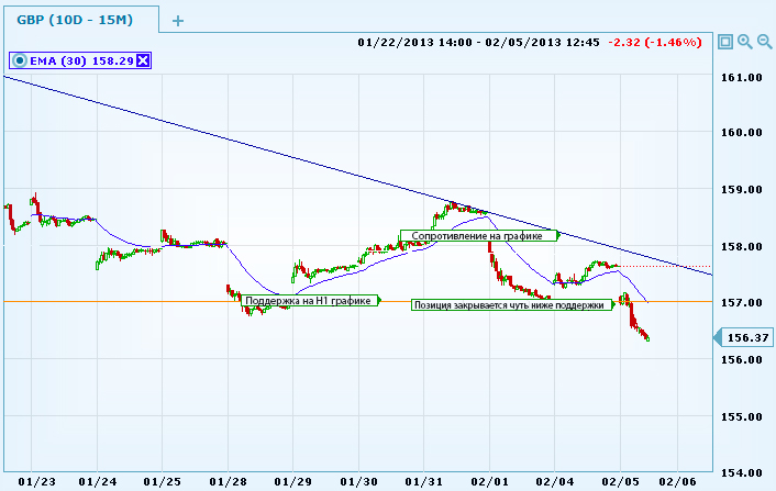 Сигналы происходят, когда под линией поддержки наблюдается пробой, зависящий от закрытия уже под выбранной или над выбранной линией. Обычный пробой, не включающий закрытия линии вполне можно считать ложным сигналом. Но только до того, пока не подтвердится он закрытием. Как только происходит закрытие, можно заняться открытием новой позиции.