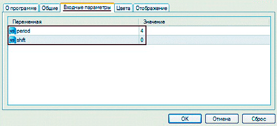 Сигнал Shift, это сдвиг SMMA по временной оси. Обычно, положительное значение данного параметра, приводит к движению вперед. Отрицательное наоборот, к сдвигу назад. На рисунке, представлены оптимальные значения параметров.